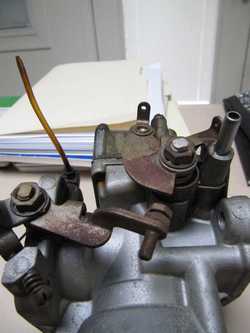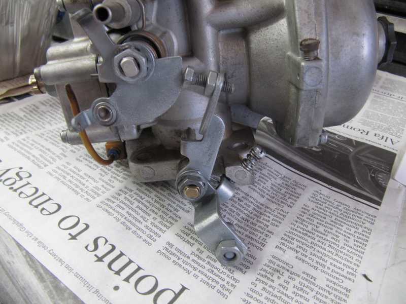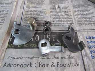 Below are some pictures of parts plated with the sulfate process. The first shows the throttle and choke levers on the Zenith-Stromberg carburetor from my '66 TR4A; the second shows some of the parts cleaned and derusted.