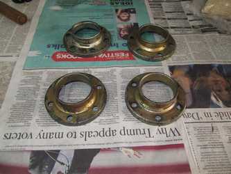 Below is a restored oil-filler cap for a TR4A after two strikes with the corn-sugar brightener. I had to drill out the central rivet to disassemble it for plating; it's now held together by a screw, which is staked on the opposite side to make sure it won't loosen and fall into the engine.